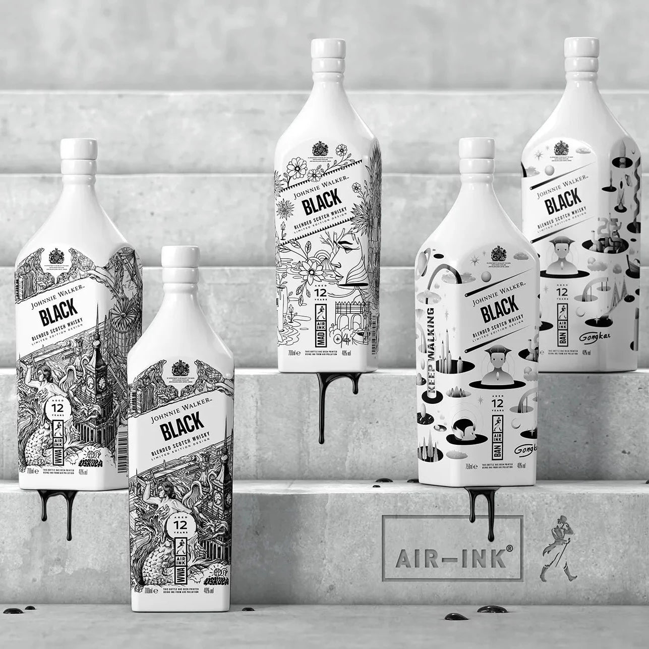 Johnnie Walker Black Label Air Ink Warsaw Limited Edition White Bottle